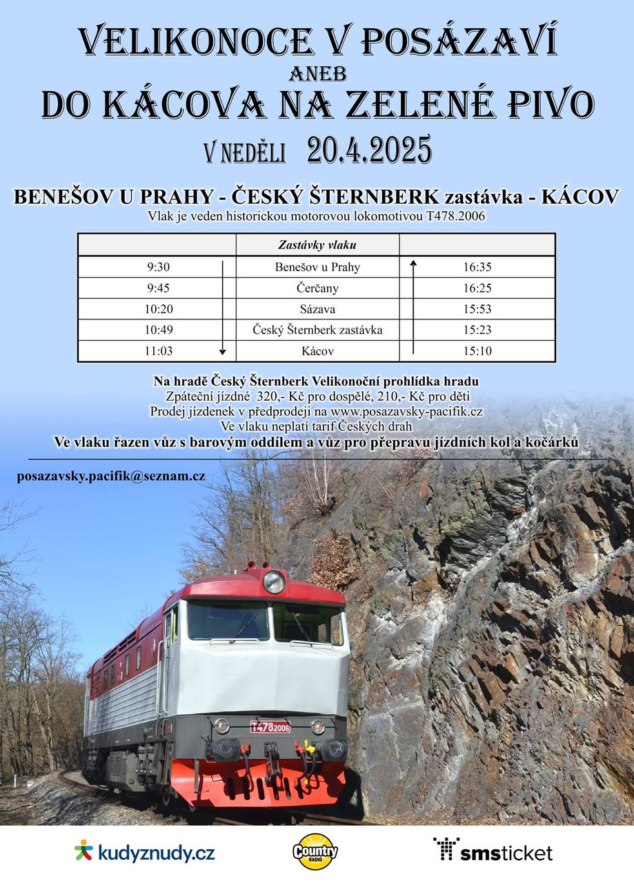 Zvláštní vlak v přímé trase Benešov – Čerčany – Sázava – Český Šternberk – Kácov a zpět!