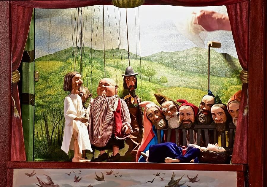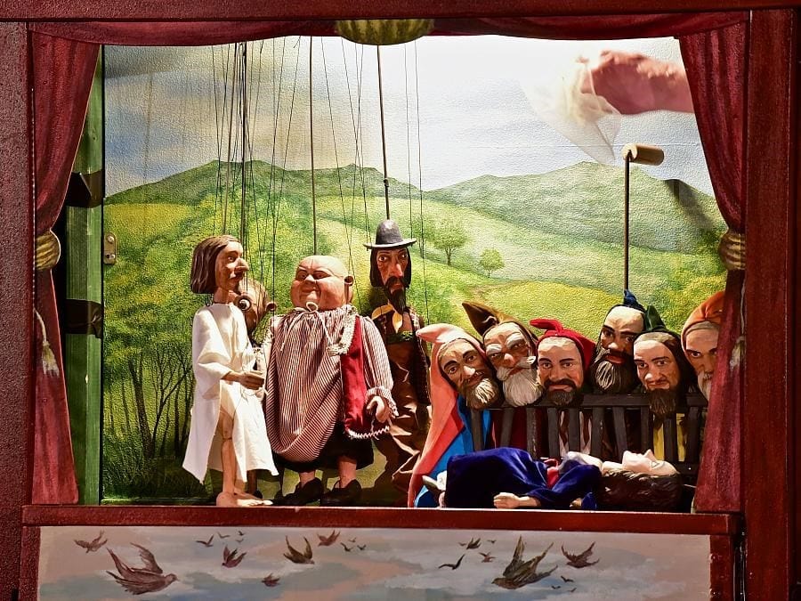 Loutkář, kejklíř a komediant Vojtěch se setkává se svým panem učitelem, aby spolu sehráli Velikonoční příběh. Zatímco Vojtěch coby loutkář má připravené klasické loutkové divadlo, tedy kukátkovou scénu a loutky z lidových pohádek, pan učitel přichází vybaven jen starou biblí. Přesto, nebo možná právě proto, spolu dokážou rozehrát prastarý příběh o lásce a obětování se za druhé, za nás za všechny.