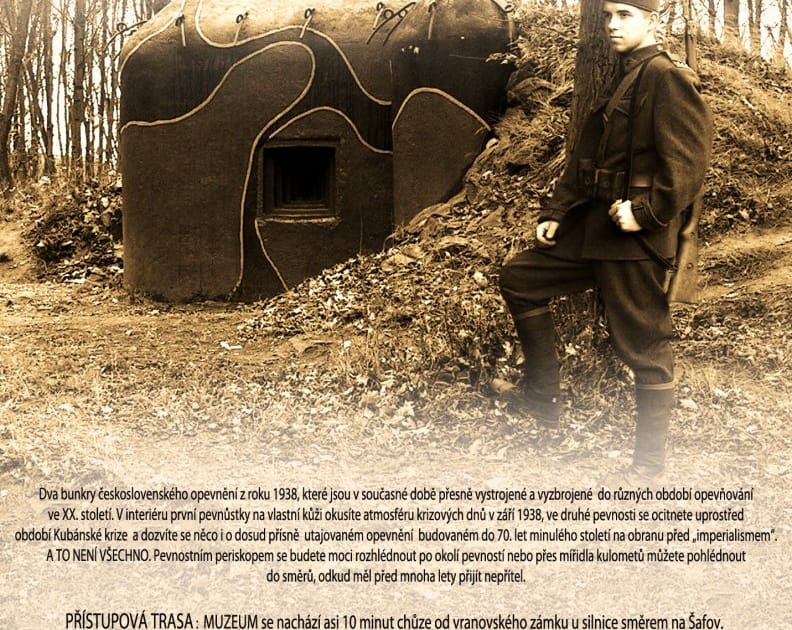 Muzeum lehkého opevnění ve Vranově nad Dyjí vzniklo v roce 1998, kdy započaly první rekonstrukční práce na tehdy opuštěných objektech. Zcela záměrně bylo vybráno pohraniční opevnění v okolí Vranova nad Dyjí, neboť se zde dochovala pozoruhodná linie opevnění chránící životně důležitou hráz přehradní nádrže. Hlavním záměrem rekonstrukčních prací bylo uvedení několika pevnostních objektů do stavu z různých historických období: první republikou počínaje, obdobím Železné opony konče. Přijďte se přesvědčit, jak mnohaletá práce vojenskohistorických nadšenců a badatelů skvěle dopadla.