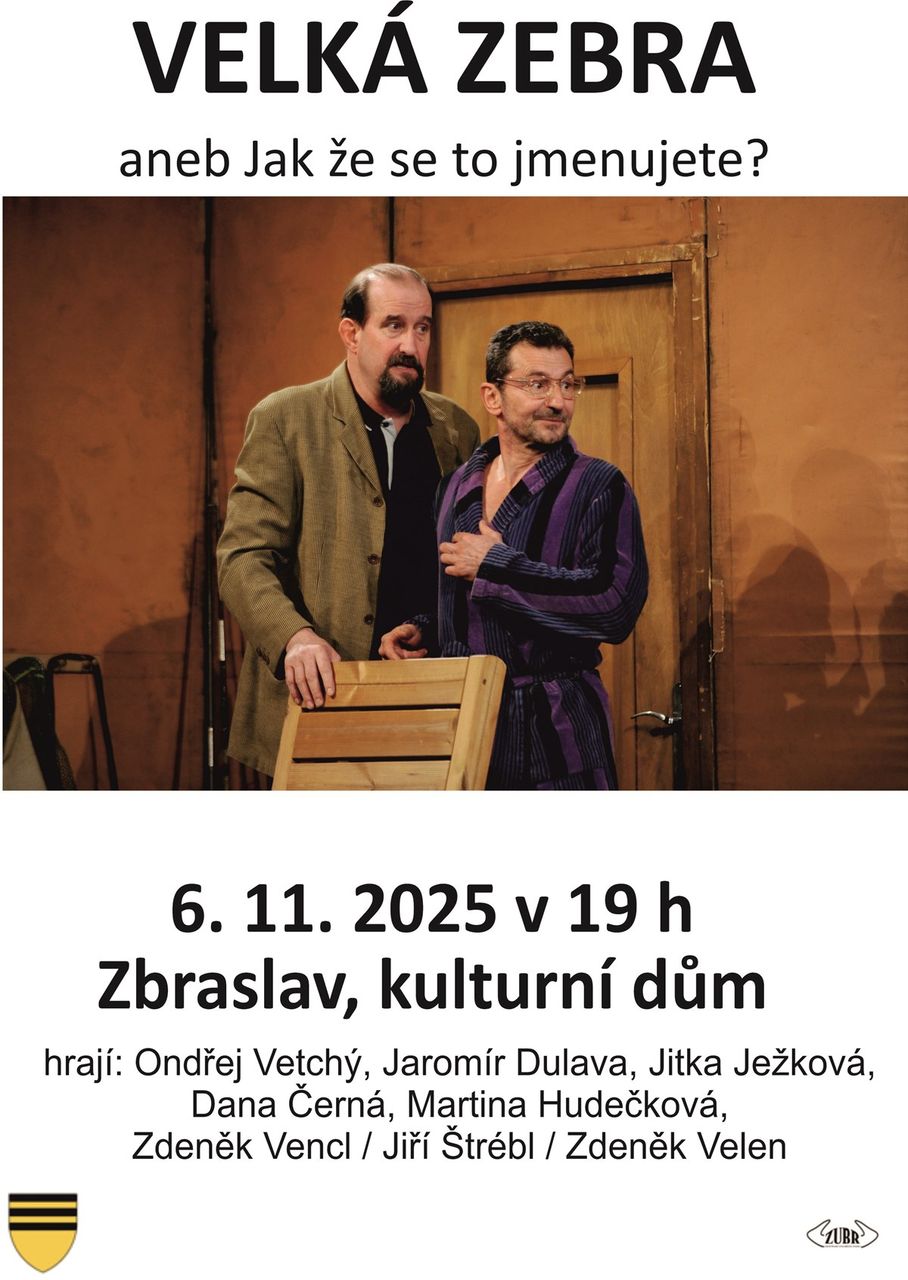 Jean-Jacques Bricaire, Maurice Lassayques: VELKÁ ZEBRA aneb Jak že se to jmenujete? — bláznivá komedie o tom, kdo vlastně jsme. V listopadu v kulturním domě ve Zbraslavi u Brna!