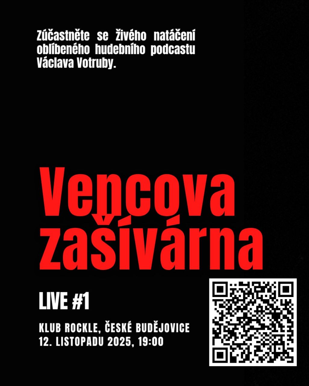 Mám velkou radost, že vás mohu pozvat na natáčení první „live“ Vencovy zašívárny. Uskuteční se 12. listopadu a zpovídat budu opravdu zajímavé osobnosti české metalové scény: Petra Koláře z Thrash Nightmare Promotion a Doomentia Records a kytarového střelce Honzu Běhunka ze Seven.