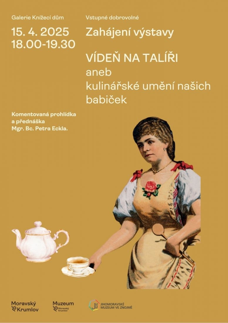 Moravský Krumlov zve návštěvníky na zahájení výstavy „VÍDEŇ NA TALÍŘI- aneb kulinářské dědictví našich babiček“, která bude k vidění v Knížecím domě v Moravském Krumlově. Slavnostní zahájení výstavy v galerii se koná v úterý 15. dubna od 19 hodin a výstava potrvá až do 17. srpna. Výstava byla zapůjčena od Jihomoravského muzea ve Znojmě. Expozice je zaměřena na vídeňskou kuchyni a její vliv na tradiční pokrmy nejen v moravsko-rakouském příhraničí.