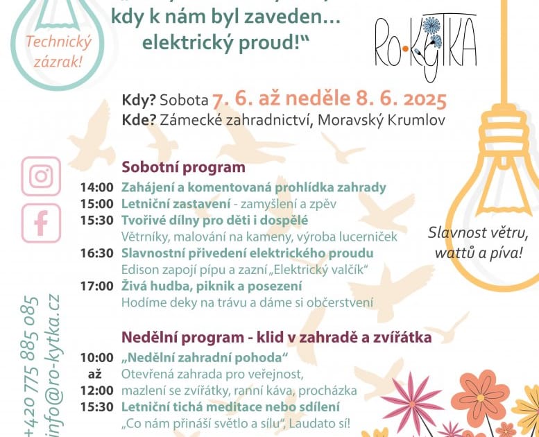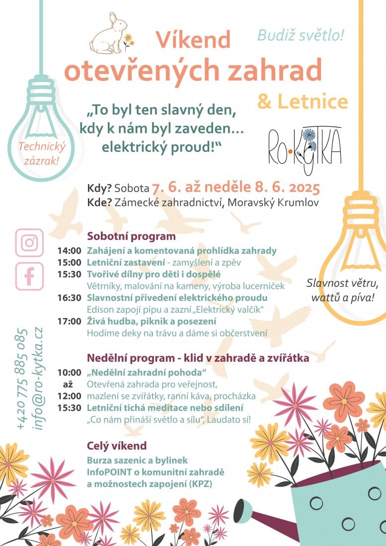 Víkend otevřených zahrad je mezinárodní akcí, která se každoročně koná počátkem června. Letos můžete tuto událost oslavit také v bývalém Zámeckém zahradnictví v Moravském Krumlově. Těšit se můžete na komentované prohlídky, burzu sazenic a bylinek, tvořivé dílny pro děti i dospělé, živou hudbu i piknikové posezení v trávě a pivo. Letošní téma bude věnováno také elektřině.