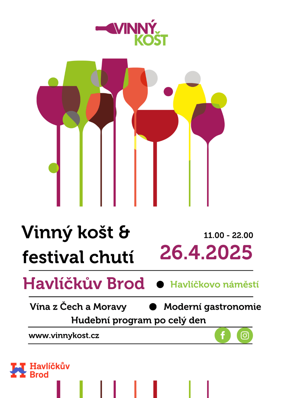 Zveme vás na čtvrtý ročník akce Vinný košt & festival chutí v Havlíčkově Brodě, která se uskuteční v sobotu 26. 4. 2025 na Havlíčkově náměstí.