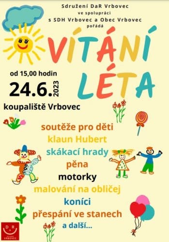 Trošku opožděný Dětský den a trošku urychlené zahájení prázdnin, ale za to naprosto přesné otevírání Vrboveckého koupaliště. Odpoledne vás v jeho travnatém areálu čeká skákací centrum, pěna, jízda na konících i motorkách, hry a soutěže, kejklířské vystoupení i večerní jam session s kytarami, stezka odvahy, a pokud si postavíte stan, tak i přespání v něm.