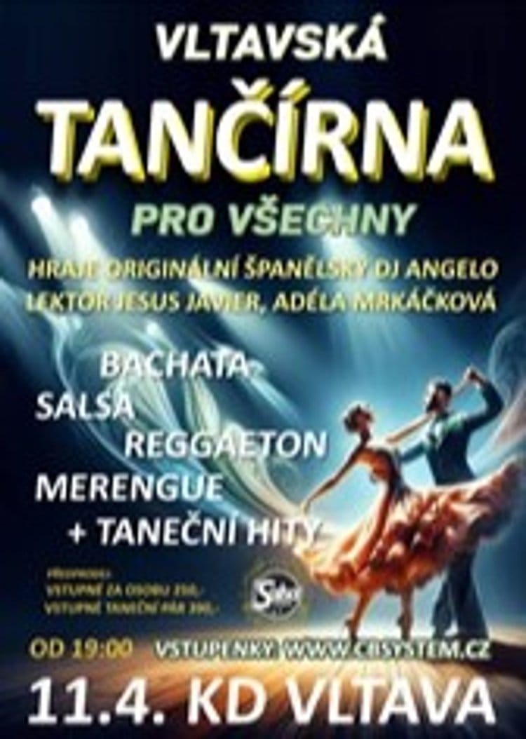 Dorazte si užít velký parket KD Vltava, kde budete mít dostatek prostoru na taneční kreace různých populárních tanečních rytmů, které Vám s přehledem naservíruje originální španělský DJ Angelo. Jak host večera vystoupí a s tancem poradí Adéla Mrkáčková a Jesus Javiera, z taneční školy „Salsa Ecsuela“. Vstupné pro taneční páry za zvýhodněnou cenu.