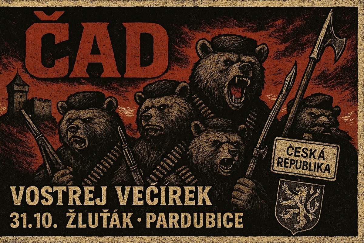 ČAD – a konečně vrchol večera. Ze Slovenska dorazí medvede a budou okupovat pardubickej Žluťák tak dlouho, dokud z vás nepoteče pot a krev. Thrash-hardcore zbojníci, co tě budou kopat do koulí, přitom se ještě smát a ty jim za to ještě poděkuješ. Ano takhle to bude.