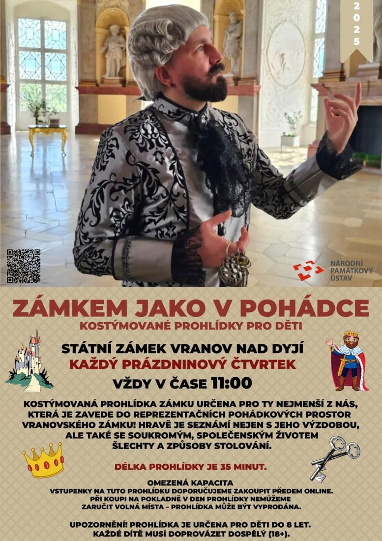 Novinka roku 2025! Kostýmovaná prohlídka zámku určena pro ty nejmenší (cca do 10 let) v doprovodu alespoň jednoho dospělého. Sám Michal Jan II. hrabě z Althannu (či členové jeho rodiny) pozvou malé i velké návštěvníky do svého barokního sídla. Zavede je do reprezentačních prostor Vranovského zámku, ukáže jeho pohádkovou výzdobou a seznámí také se soukromým a společenským životem šlechty, včetně způsobů stolování.