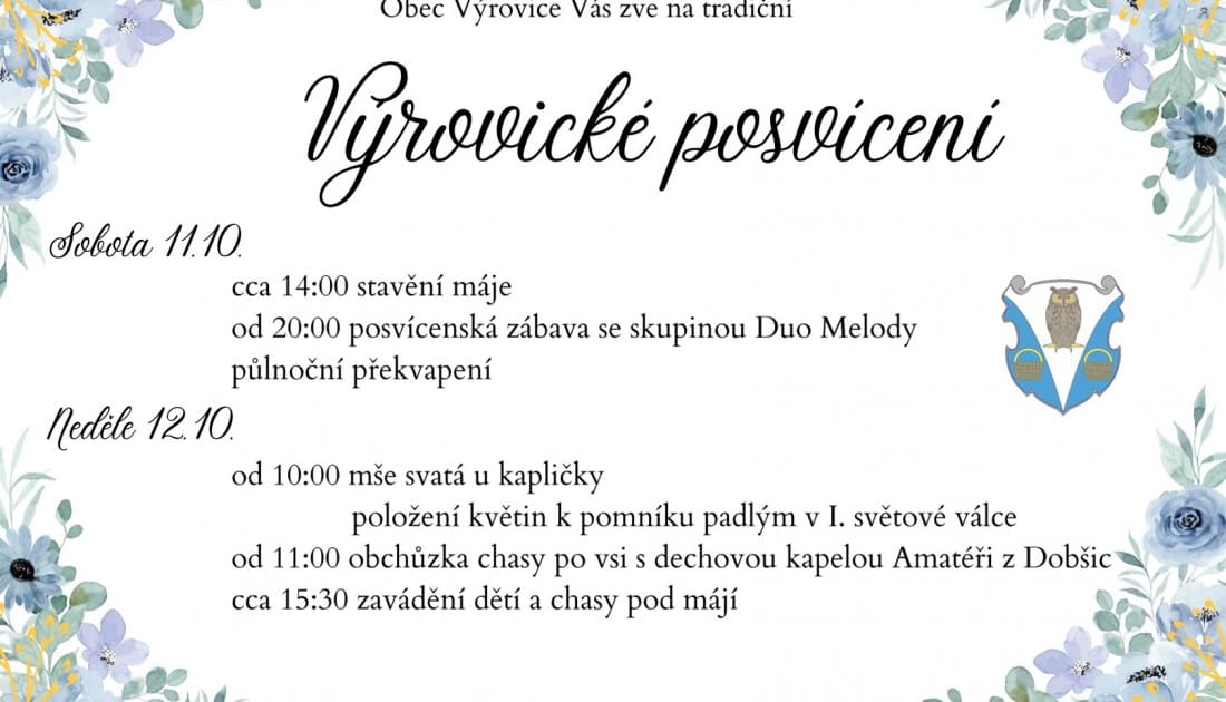 Tradiční Výrovické posvícení zahájí sobotní stavění Máje a večerní zábava, na které v neděli naváže slavnostní mše svatá, obchůzka chasy po vsi s dechovou hudbou i odpolední zavádění pod Májí.