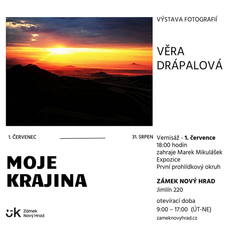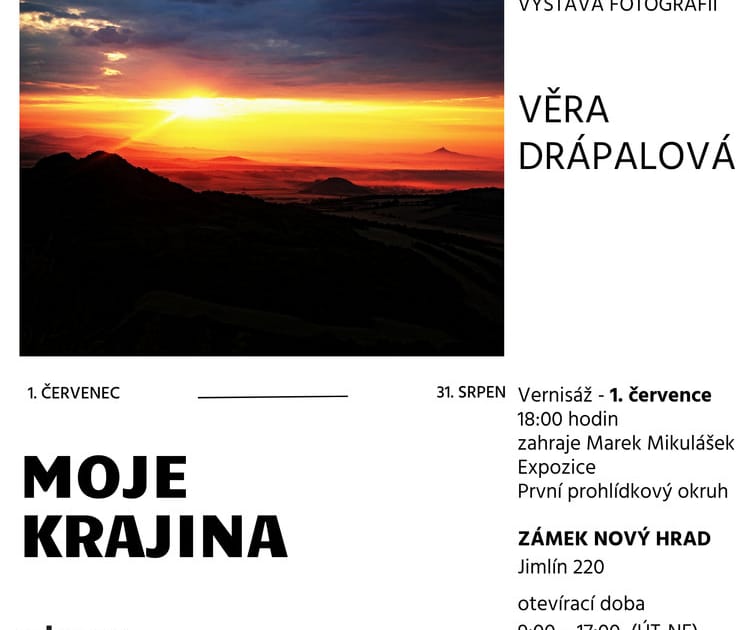 Od 1.7. do 31.8.2025 bude součástí prvního prohlídkového okruhu „ZÁMEK“ výstava fotografií Věry Drápalové „Moje krajina“. Vernisáž výstavy je 1.7. v 18:00, na vernisáži zahraje Marek Mikulášek.