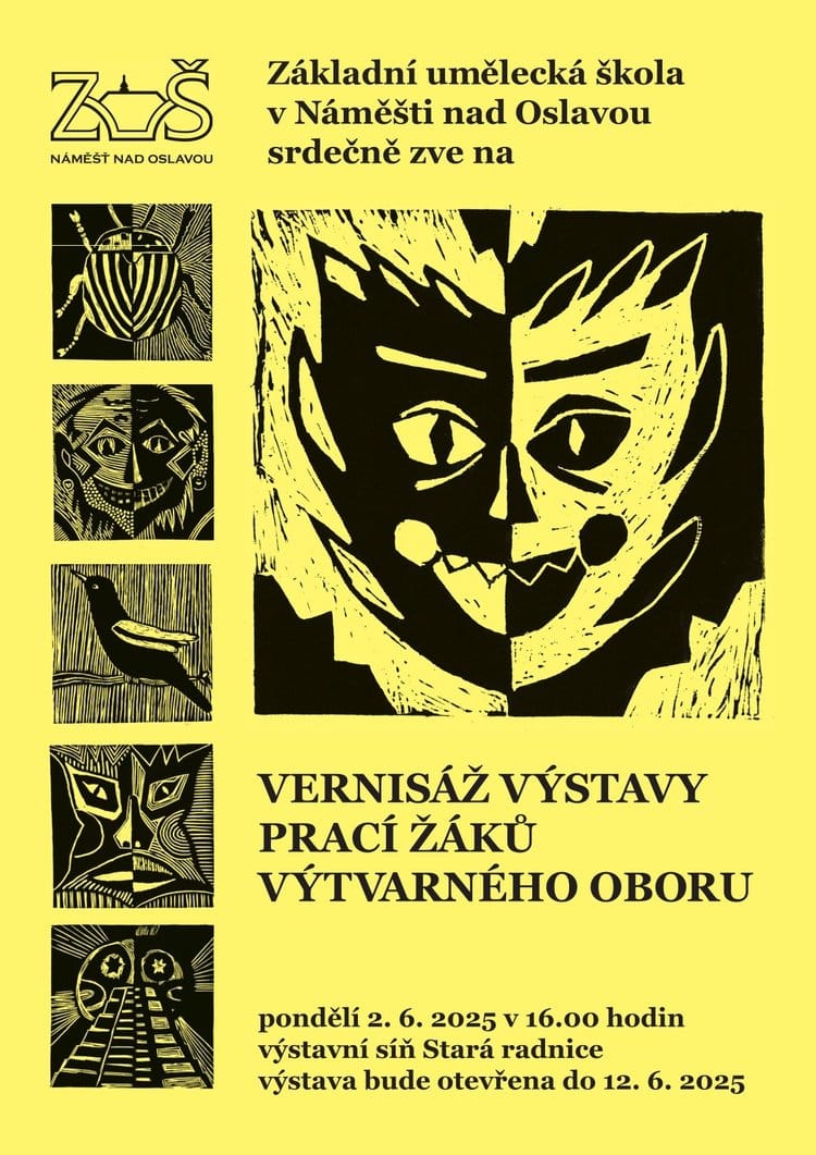 Výstava prací žáků výtvarného oboru ZUŠ Náměšť nad Oslavou. Výstava je ve Výstavní síni – dveřmi přes Turistické a informační centrum v průchodu Staré radnice.
