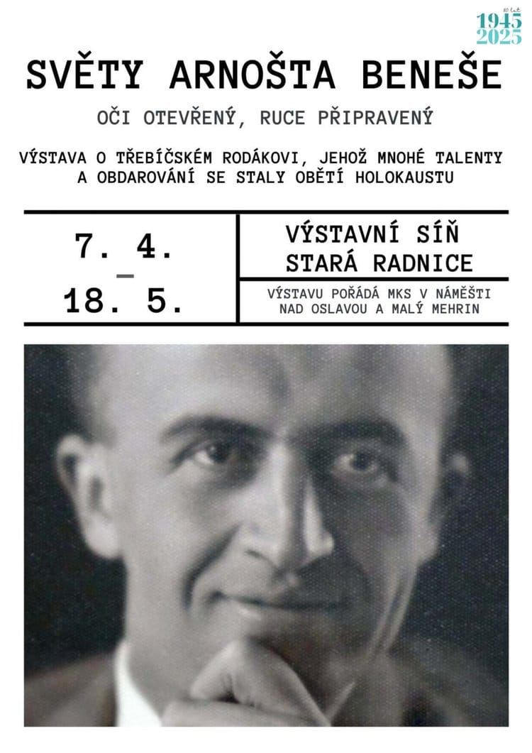 Výstava postavená na příběhu třebíčského rodáka Arnošta Beneše připomene nejen existenci jedné ze zásadních moravských židovských obcí, ale především osobnost člověka nadaného mnoha talenty – Arnošt Beneš byl fotograf, malíř, filmař, stolař, řezbář, sběratel, profesí účetní a obchodní zástupce firmy Grünberger.