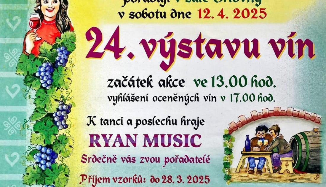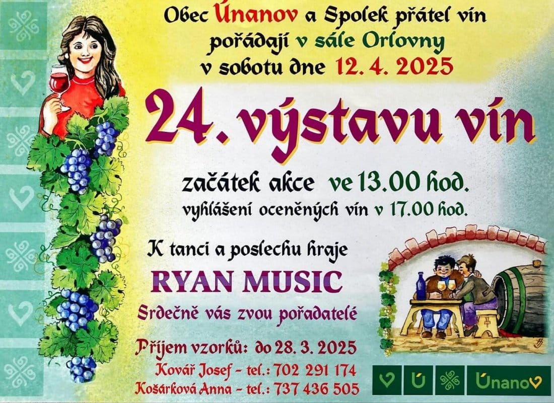 Ochutnejte skvělá regionální vína v Únanově nedaleko Znojma, kde v místní Orlovně pořádá Spolek přátel vín už 24. ročník vinařské výstavy. Akce odstartuje ve 13 hod. a v 17 hod. dojde na vyhlášení oceněných vín. A chybět nebude ani muzika!