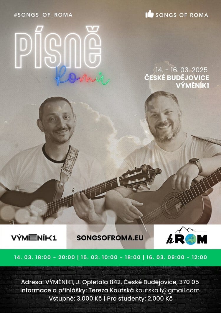 Přijďte si s námi zazpívat nádherné romské písničky. Workshop povedou dva hudebníci z tradičních romských rodin, Oto Bunda [SK] & Jan Dužda [CZ].