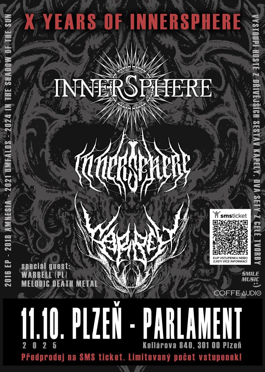 Výroční koncert kapely Innersphere – 10 let na scéně, 1 EP a 3 dlouhohrající alba. Kapela zahraje dva speciální sety, kde bude možné slyšet i léta nehrané skladby a vidět i dřívější členy kapely z předešlých let. Bude to průřez diskografií, oslava, vzpomínání a především pořádná porce muziky. Speciálním hostem večera jsou polští Warbell.