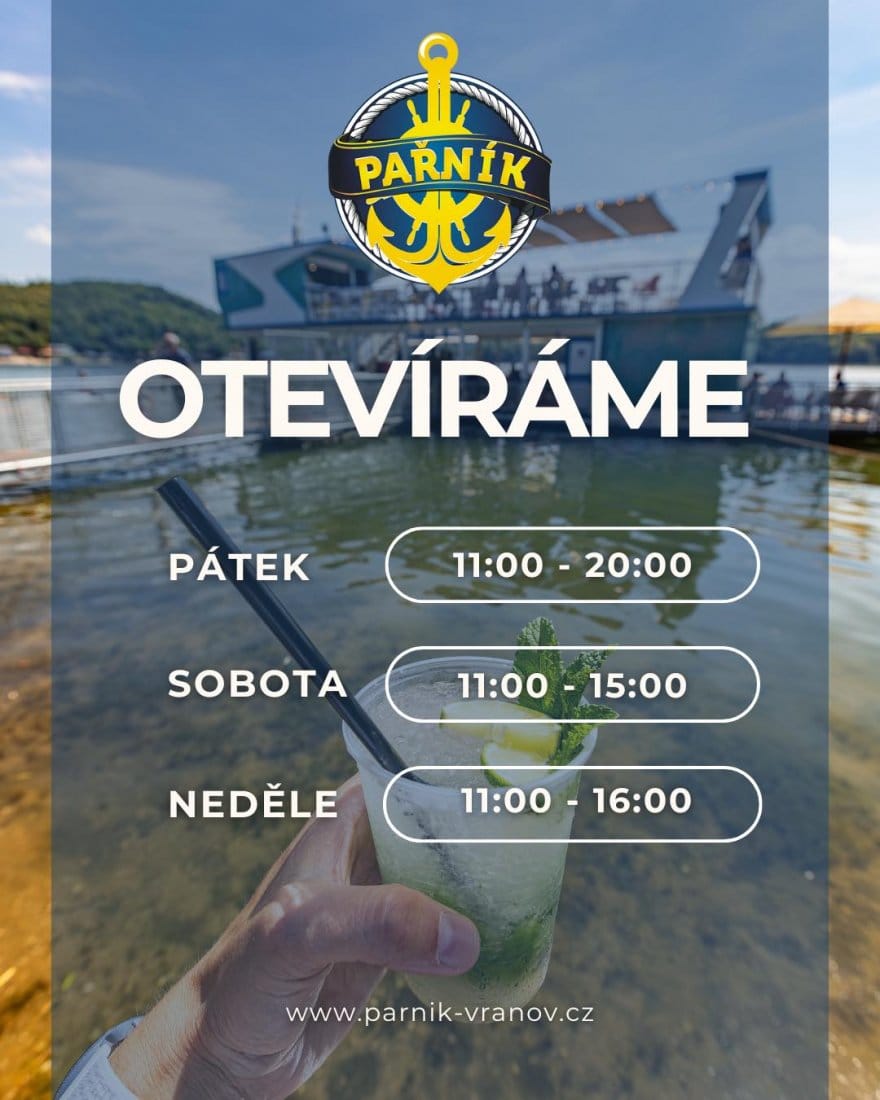Na zahájení sezóny zve letní bar na vodě PAŘNÍK SUMMER BOAT, který najdete přímo na Vranovské pláži. Otevřeno je po celý víkend. Kromě skvělých nápojů si zde můžete vychutnat i hudební kulisu, sluneční terasu a možnost koupání se vstupem do vody přímo z lodi.