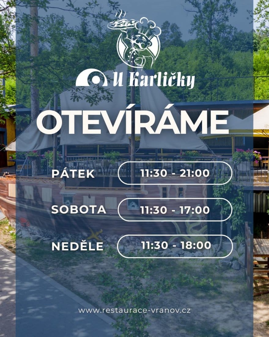 Na zahájení sezóny zve restaurace a pizzerie U KARLIČKY, kterou najdete přímo na Vranovské pláži. Otevřeno je od pátku do neděle.