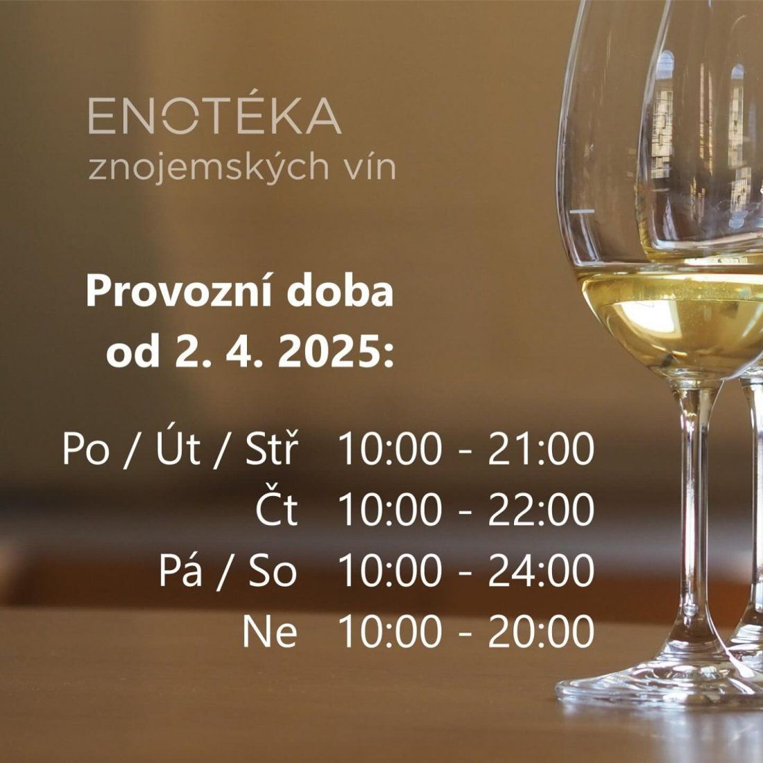 Na novou sezónu se můžete těšit i v Enotéce znojemských vín v areálu bývalého Znojemského hradu. Od 2. dubna tu můžete „přechutnat“ celou Znojemskou vinařskou podoblast každý den. K dispozici Vám tu i letos bude na 120 druhů vín v samoobslužných automatech, jejichž obsah si navolíte sami podle vlastní chuti. Enotéka však reprezentuje i odborníky oceňovanou moderní architekturu, která z původní pivovarské kotelny a strojovny vykouzlila unikátní prostor. V něm se kromě špičkového vína zabydlela také designová kavárna s výtečnou kávou a domácími zákusky. Za slunečních dnů pak můžete využít i venkovní posezení s krásným výhledem na staré město a kostel sv. Mikuláše.
