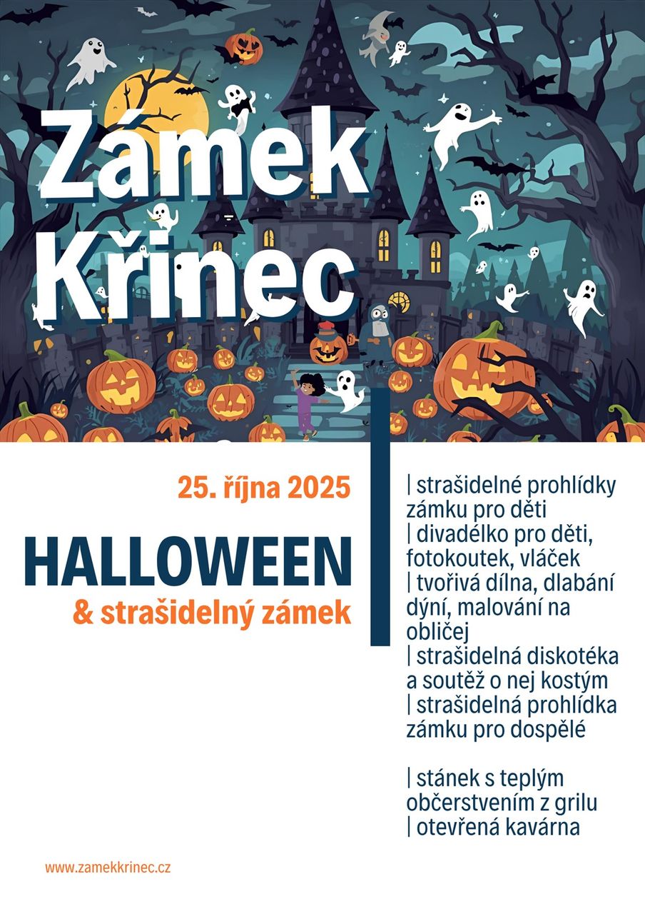 Celodenní program plný prohlídek pavučinami opředeného zámkupro děti i dospělé, strašidelné dílničky, dlabání dýní, soutěž o nejoriginálnější kostým či vrchol dne – STRAŠIDELNÁ DĚTSKÁ DISKOTÉKA, to vše najnete u nás! 🙂