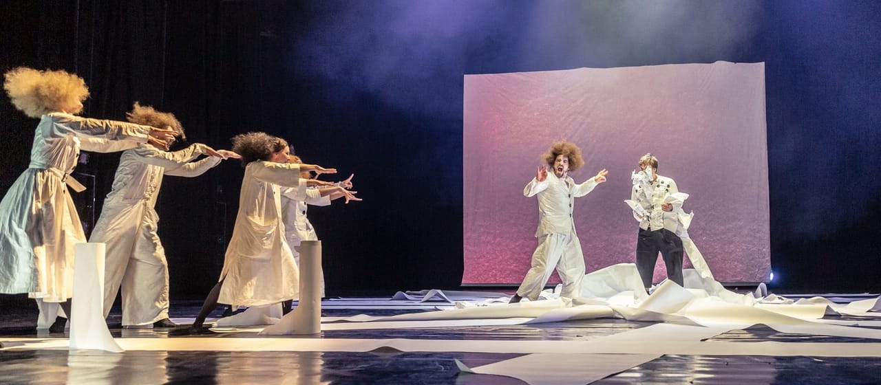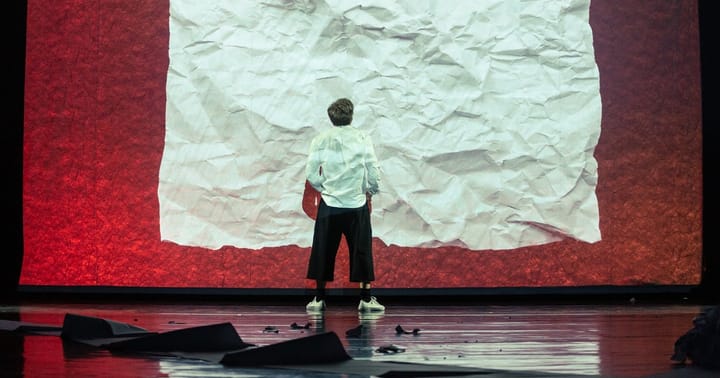 Poetická inscenace pro děti i jejich rodiče o křehkém světě, který si vytváříme sami. Hlavní slovo v ní patří papíru, hravosti a dětské fantazii. Multižánrová inscenace kombinuje pantomimu, současný tanec s prvky akrobacie, loutkoherectví i animace v podání souboru Laterny Magiky na Nové scéně Národního divadla.
