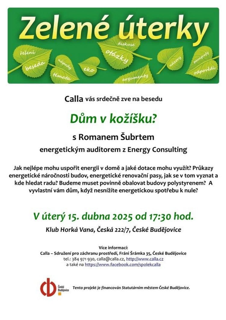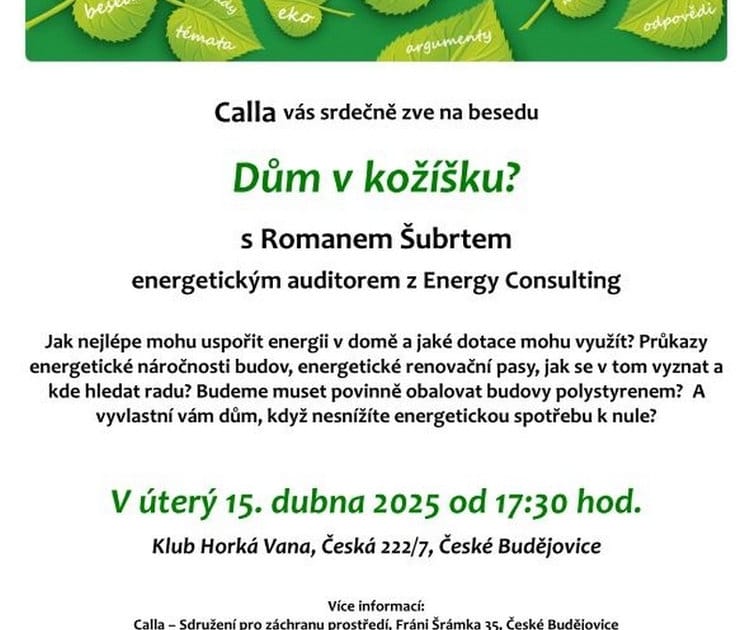 Jak nejlépe mohu uspořit energii v domě a jaké dotace mohu využít? Průkazy energetické náročnosti budov, energetické renovační pasy, jak se v tom vyznat a kde hledat radu? Budeme muset povinně obalovat budovy polystyrenem? A vyvlastní vám dům, když nesnížíte energetickou spotřebu k nule? Další Zelený úterek, tentokrát s Romanem Šubrtem, zkušeným energetickým auditorem z Energy Consulting.