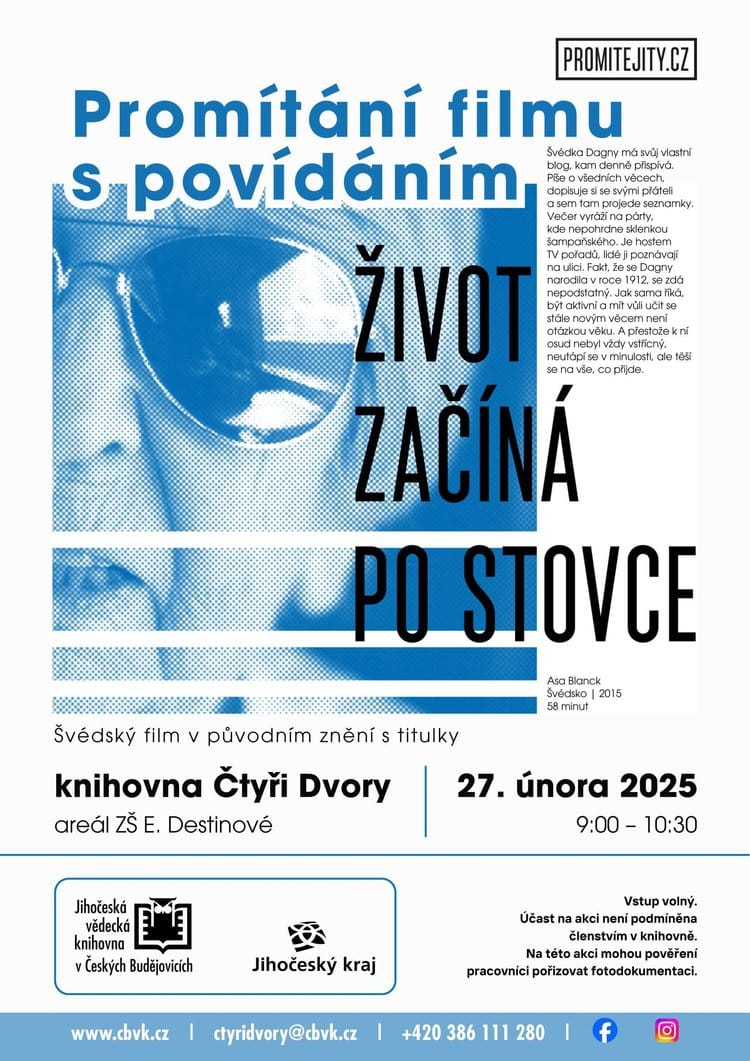 Promítání filmu s povídáním ,,Život začíná po stovce“ . Švédský film v původním znění s titulky.