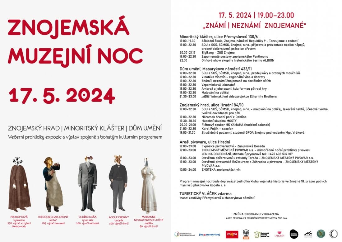 V květnu a červnu probíhá tradičně po celé České republice Festival muzejních nocí a jednotlivé muzejní instituce se přidávají se svým vlastním programem. Každoročně je mezi nimi i Jihomoravské muzeum ve Znojmě, které letos pozve třetí květnový pátek na program nazvaný „Známí / Neznámí Znojemané“, zaměřený na zapomenuté, méně i více známé osobnosti spojené s městem Znojmem.