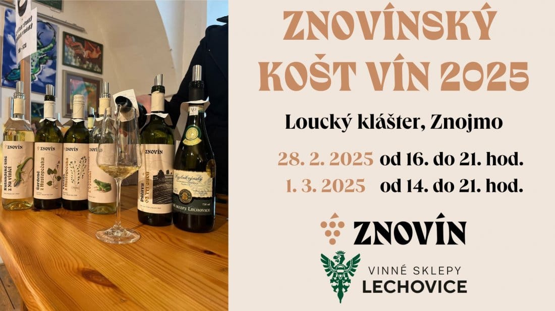 Znovín Znojmo a Vinné sklepy Lechovice zvou na svou tradiční pochůzkovou ochutnávku vín, která se uskuteční ve štukových sálech a v Galerii u Svatých v Louckém klášteře ve Znojmě. K dispozici bude více než 120 vzorků vín a atmosféru zpříjemní cimbálová muzika Jožky Šmukaře. Páteční program poběží od 16 do 21 hod. a sobotní od 14 do 21 hod. Vstup na akci je zdarma. Ochutnávky probíhají formou placených bločků – cena 1 bločku je 10 Kč + záloha na skleničku 100 Kč. Na místě bude možné zakoupit i drobné občerstvení.