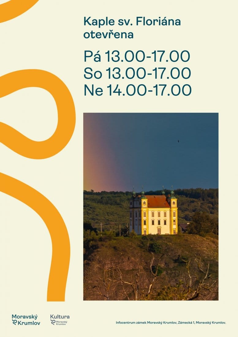 Barokní kaple sv. Floriána vypínající se na krásném vyhlídkovém místě vysoko nad Moravským Krumlovem se od května 2025 otevírá veřejnosti. Její návštěva byla dosud možná pouze při výjimečných příležitostech. Nově je možné si její interiéry prohlédnout vždy v pátky a soboty od 13 do 17 hod., v neděli pak od 14 do 17 hod. (o prázdninách až do 18 hod.), a to až do konce září 2025.