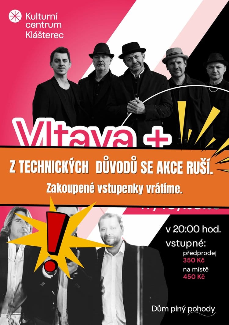 Spojení dvou originálních hudebních projektů na jednom pódiu!Kapela Vltava s frontmanem Robertem Nebřenským přiveze poetické texty a nezaměnitelný zvuk, zatímco -123min vás vtáhnou do světa groove, jazzu, funku a soulu.