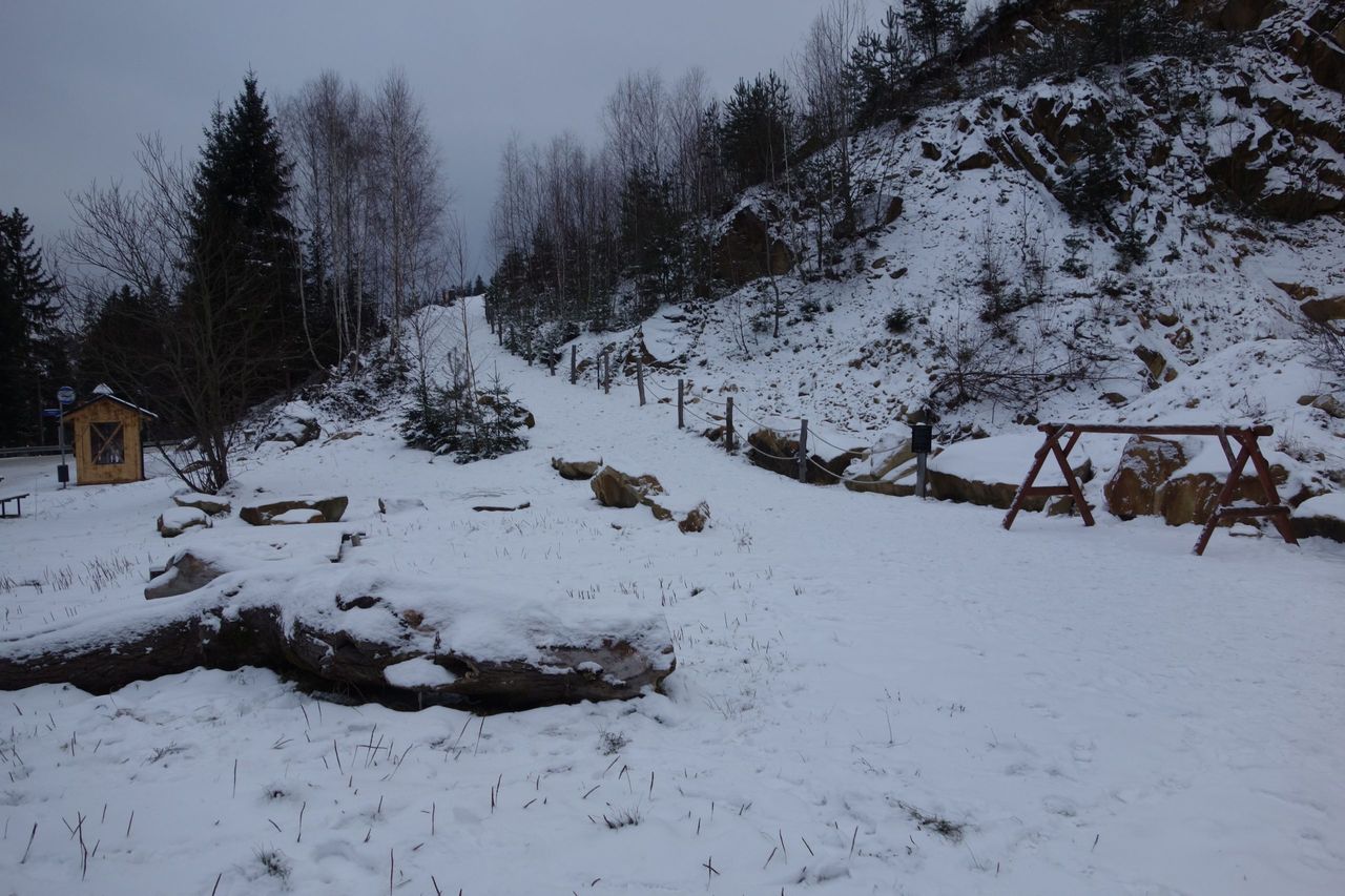 Nad lomem vystoupíte na vyhlídkovou lavičku, která vám přehradu i lom ukáže přímo z ptačí perspektivy. V zimním období však dbejte zvýšené opatrnosti. Vyhlídková plošina může být mírně namrzlá – vlastní zkušenost mě naučila, že kvalitní obuv je v mrazu nezbytností.