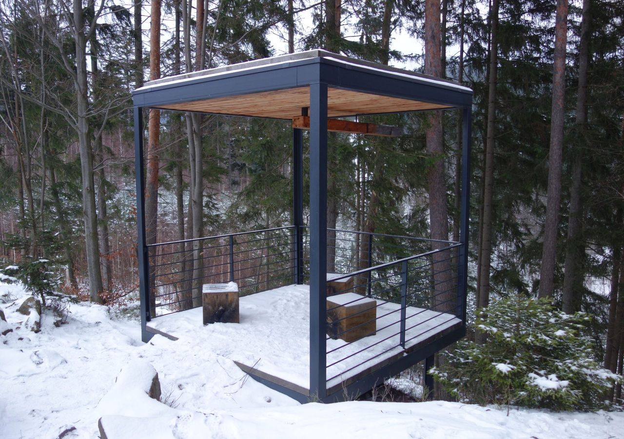 V další části okruhu vás čekají tři minimalistické vyhlídky ve tvaru otevřené krychle. Vyhlídky jsou přístupné celoročně a zdarma. Každá je vybavená kovovým zábradlím zajišťujícím bezpečnost návštěvníků a také dřevěnými sedačkami pro odpočinek. V podvečerních hodinách jsou dokonce osvětlené. Vyhlídky jsou pojmenované podle své polohy.