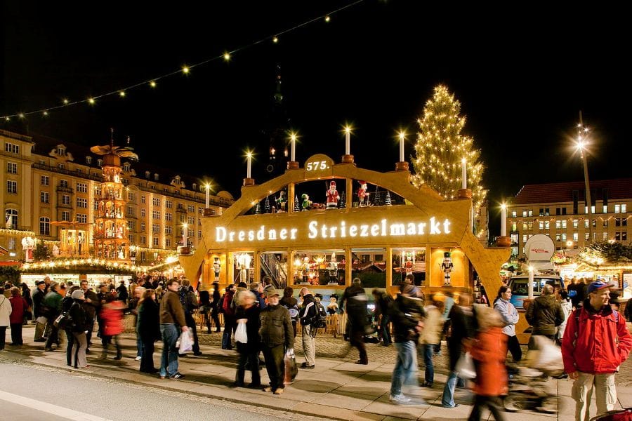 Pyšní se jedním z nejstarších vánočních trhů v Evropě. Na Striezelmarktu V Drážďanech se tu pořádají nepřetržitě od roku 1434, letos začínají 26. listopadu. Atrakcí je obří svícnový oblouk, světelná dekorace, kterou u vstupu projdete. Každý rok na Striezelmarkt přijde přes dva miliony návštěvníků. Obrovská dřevěná vánoční pyramida vysoká 14, 6 metru se tyčí jako obří dominanta mezi stánky, vzduchem voní legendární drážďanské štoly a z pódia se ozývají koledy v podání místních sborů. Nechybí dětský koutek s kolotočem, řemeslné dílny. I tady je trhů víc, za pozornost stojí Neumarkt u kostela Frauenkirche, Augustusmarkt v Novém městě za řekou Labe s bílými a zlatými pagodami, Winterlights na Prager Straße, což je vlastně krásně nasvícená nákupní ulice překypující dekoracemi. A konečně Stallhof, středověký trh s ukázkami dobových řemesel, starých tradic i hudby, jako kdyby vás někdo přesunul strojem času – tenhle zážitek si nenechte ujít.