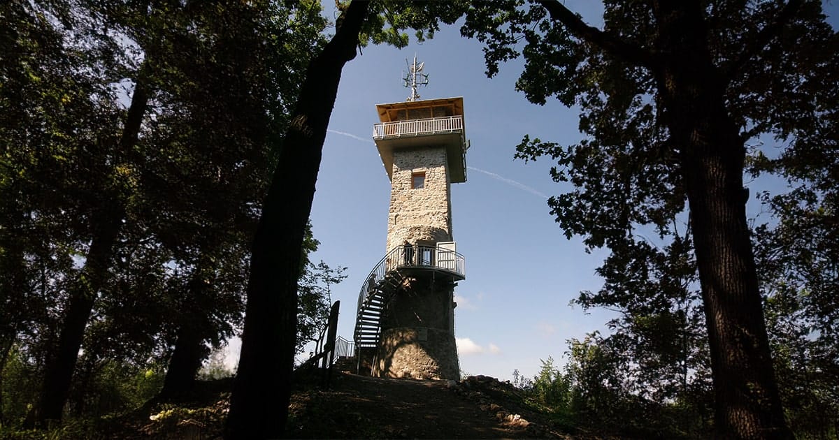 - Panorama: Z rozhledny je nádherný výhled na okolní lesy a krajinu Moravského krasu, město Adamov, Brno a za dobré viditelnosti i na vzdálenější pohoří jako Bílé Karpaty a Chřiby.