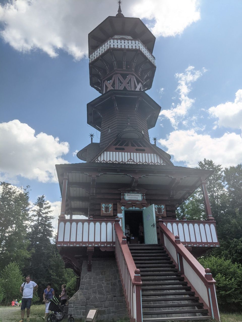 - Konstrukce: Rozhledna je dřevěná stavba s kamennou základnou, typická pro Jurkovičův styl, který kombinuje prvky lidové architektury a secese. Věž je vysoká 31 metrů a nabízí několik vyhlídkových plošin.