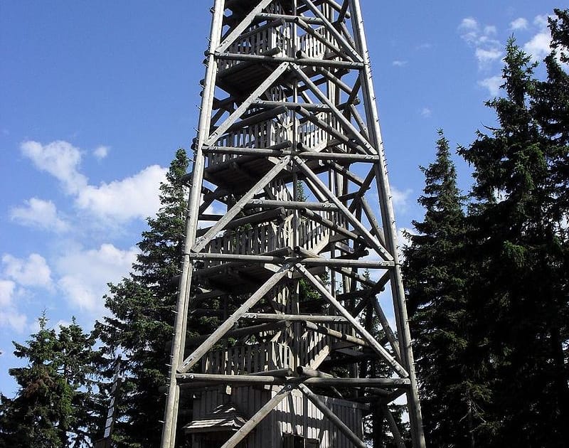 - Architektura: Rozhledna je dřevěná konstrukce, vysoká 21 metrů. Na vrchol vede 109 schodů.