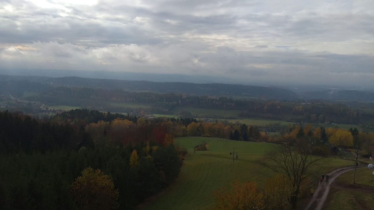 Z otevřeného ochozu ve výšce 22 m se nabídne kruhový výhled na: