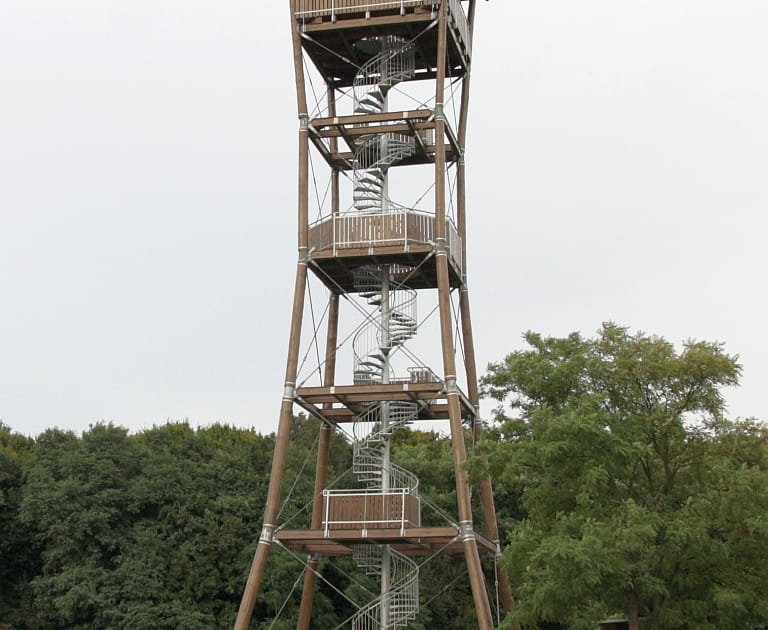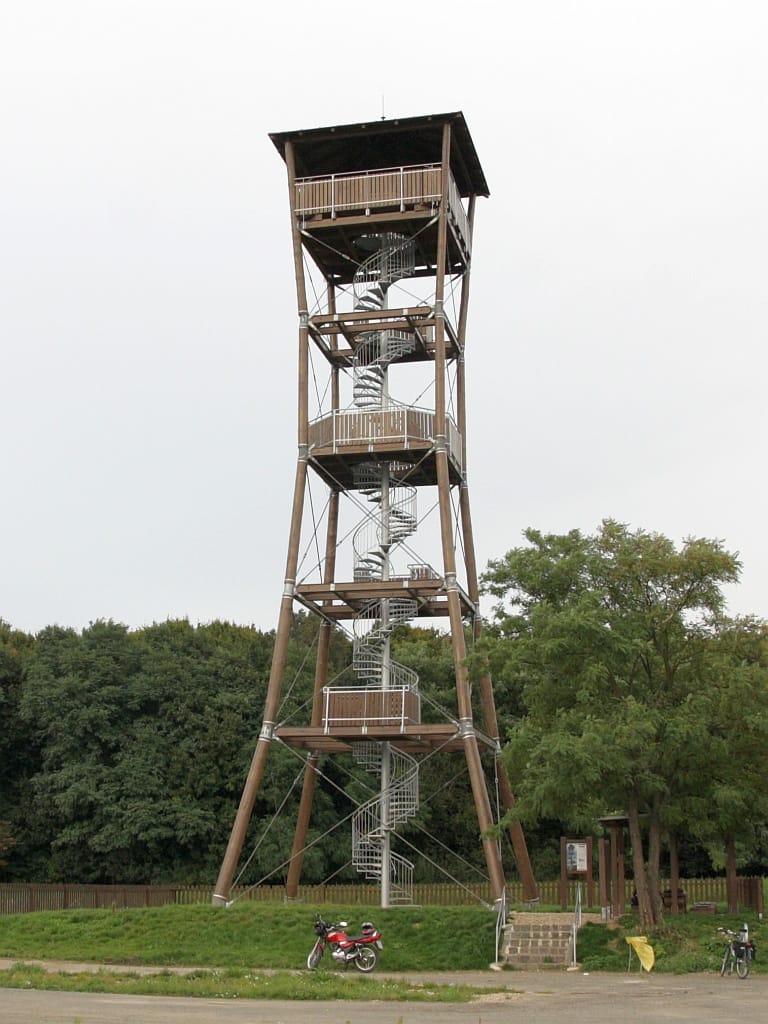 - Konstrukce: Rozhledna je dřevěná konstrukce s kovovými prvky. Je vysoká 26 metrů a má otevřenou vyhlídkovou plošinu.