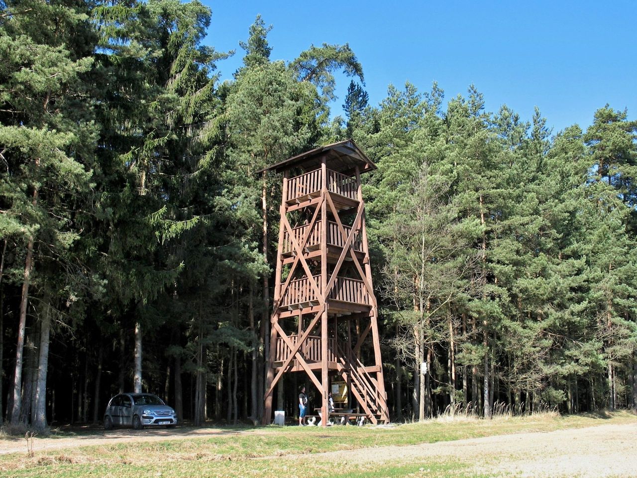 - Konstrukce: Dřevěná rozhledna, vysoká 13 metrů.