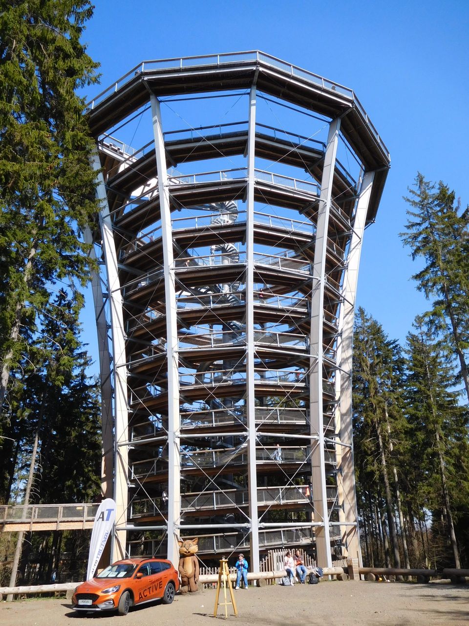 - Vyhlídková věž: Součástí stezky je 45 metrů vysoká vyhlídková věž, která poskytuje panoramatické výhledy na Krkonoše a okolní krajinu.