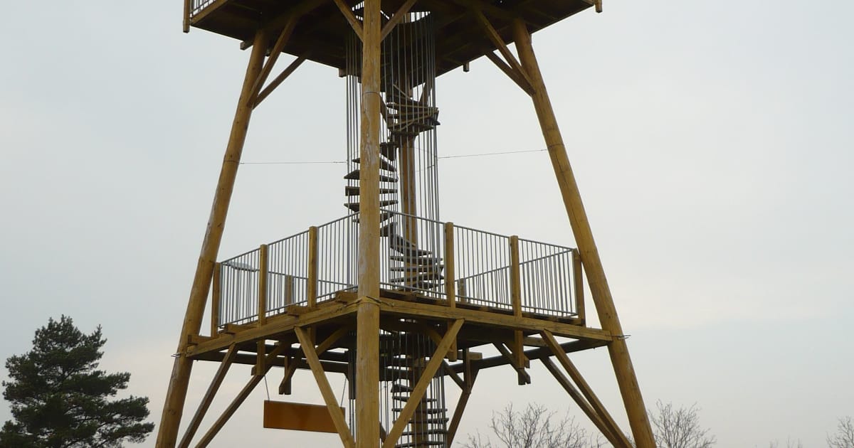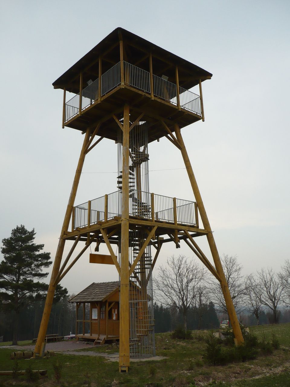 - Konstrukce: Rozhledna je dřevěná stavba s kovovými prvky, vysoká 15 metrů. Má dvě vyhlídkové plošiny.