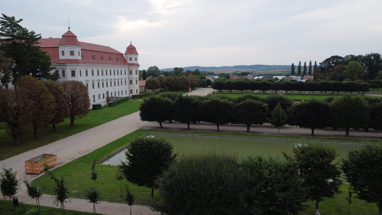 Přilehlý park, který svou rozlohou 62 ha patří k největším na Moravě, je dalším klenotem této památky. Park je ztvárněn v klasickém francouzském stylu a jeho koncepce je naprosto ojedinělá. Mezi nejzajímavější prvky parku patří systém vodních kanálů ve tvaru Neptunova trojzubce a Růžová zahrada, kde se nachází pomník skladatele F. X. Richtera. Návštěvníci se mohou těšit na procházky po udržovaných cestách, které nabízí klid a krásu tohoto jedinečného místa.