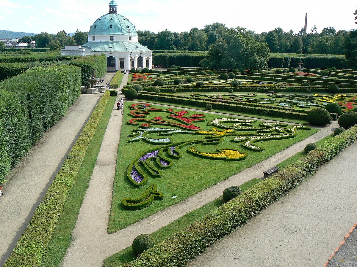 Už samotná Květná zahrada je evropským unikátem – jde o jedinou zahradu tohoto typu na kontinentě. Lichtenštejn-Kastelkorna měl o její konečné podobě dosti přesnou představu. Inspiroval se zahradami různých sídel, třeba u vily d´Este v italském Tivoli, v zahradách zámku ve francouzském Versailles, nebo v mnichovské rezidenční zahradě. Propojují se zde proto různé zahradnické styly, což je naprosto neobvyklé. Nechybí zde unikátní prvky. V osmiboké rotundě se na laně o délce 25 metrů houpe Foucaultovo kyvadlo, největší u nás. Jeho úkolem je znázornit, jak se Země otáčí kolem osy.